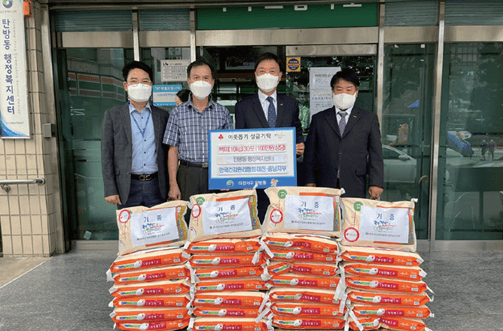 대전충남지부는 9. 9.(목) 소외계층에 대한 나눔실천을 위해 서구 탄방동 주민자치센터를 찾아 쌀 30포를 전달했다. 이번 쌀 전달은 우리나라 고유명절인 추석을 맞아 소외되고 어려운 이웃에게 따뜻한 사랑을 전달하기 위해 마련됐다. 문원주 대전충남 본부장은 “지역사회와의 사랑 나눔을 실천하기 위해 사회공헌 건강검진, 자원봉사, 사랑의 후원금 등을 지속적으로 지원하겠다”고 전했다.
