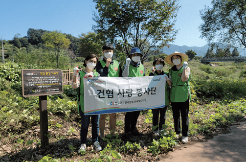 인천지부는 지난 9. 3.(금) 인천시 서구 청라동에 위치한 청라문화공원에서 노랑꽃창포 식재지 주변 환경정화활동을 실시했다. 쓰레기를 줍고 잡초들을 뽑아 노랑꽃창포가 잘 자랄 수 있는 건강한 환경을 조성하는 유익한 시간을 가졌다. 청라문화공원 노랑꽃창포는 2019년 청라어울마루봉사단과 건협사랑봉사단이 함께 7천촉을 심어 현재까지 호수 수질개선 및 공원을 찾는 시민들에게 볼거리를 제공하는 등 지역환경정화에 기여하고 있다.