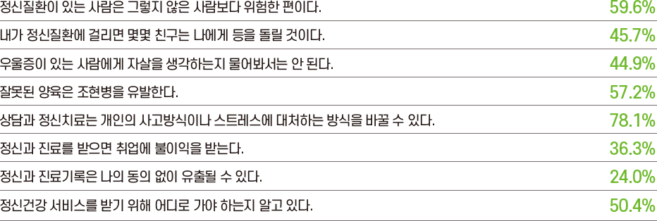 2021 국민정신건강 지식 및 태도조사 결과보고서