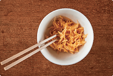 ② 채 썬 호박에 소금, 설탕을 넣고 섞어 10분 정도 둔다.