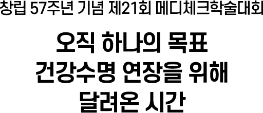 한국건강관리협회가 창립 57주년을 맞았다. 11월 5일 본회 4층 추담홀에서 열린 창립 57주년 기념 제21회 메디체크학술대회를 개최하며 지난 57년간 오직 국민의 건강증진을 위해 달려온 임직원을 격려하고 유익한 지식을 습득하는 시간을 가졌다.