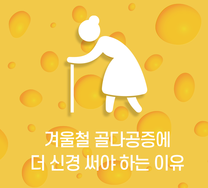 눈이나 비가 오고 난 후 날씨가 급격하게 추워지면 빙판길에서 넘어지는 사람들을 심심찮게 볼 수 있다. 넘어지면서 순간적으로 손을 바닥에 대거나 엉덩방아를 찧으면 손목 및 대퇴골 골절, 척추 압박 골절 등이 일어날 수 있으며, 골다공증 환자는 작은 충격에도 쉽게 골절이 발생하므로 각별히 주의해야 한다. 골다공증성 대퇴골 골절은 골절 발생 후 1년 내 사망률이 30~40%로 높기 때문에 겨울철 골다공증의 예방과 치료가 더 강조된다.