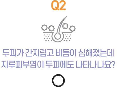 두피는 지루피부염이 흔히 나타나는 부위입니다. 두피에 뾰루지가 나거나 극심한 가려움, 각질, 비듬 등의 증상이 나타나면 지루두피염을 의심해봐야 합니다. 지루두피염을 방치할 경우 탈모로 이어질 수도 있기에 세심한 관심이 필요합니다. 외출 후에는 두피에 쌓인 피지와 노폐물을 깨끗이 씻어내 두피 청결을 유지하면 예방에 도움이 됩니다.