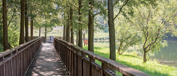 사람 없는 곳부터 일단 찾고 보는 분에게 강력 추천하는 곳이다. 진짜다. 어딜 가든 바글바글한 부산에서 이만큼 한적한 장소, 그렇게 많지 않다. 기장에 있는 용소웰빙공원은 용소골 저수지의 풍광을 즐기면서 산책할 수 있는 곳으로, 둘레길 한 바퀴가 700m쯤 된다. 상당히 아담한 공원이다. 특히 둑에서 바라볼 수 있는 용소호의 풍경이 상당히 매력적이니 꼭 방문해보길 권한다. 단, 반드시 날씨가 좋은 길일을 택해서 가야한다. 날이 궂으면 별 의미 없다. 음악은 당연히 잔잔한 스타일로 고르는 걸 추천한다. 양희은과 이상순이 함께한 ‘산책’ 같은 곡 말이다. 이상순의 섬세한 기타 연주에 양희은의 세월이 녹아 있는 깊은 목소리가 무엇보다 인상적인 곡이다.