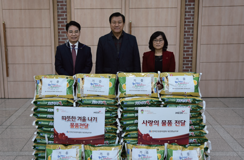 대전충남지부는 11. 26.(금) 사회복지시설에 사랑의 쌀을 전달하였다. 이번에 전달된 ‘사랑의 쌀’은 작은 손길을 통해 따뜻한 정과 행복을 나누고자 진행되었으며, 코로나19 위기 속에서 힘겨운 겨울을 이겨내고 있는 지역 소외계층에게 전달되었다. 대전충남지부는 어려운 이웃들을 위해 사랑과 관심을 지속적으로 기울여 이들이 희망을 갖고 살아갈 수 있도록 항상 노력하고 있다.