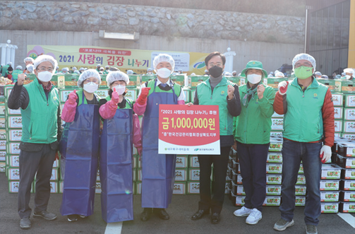 부산지부는 12. 1.(수), 김장 김치 나눔 행사에 사회공헌후원금을 전달하고 건협사랑어머니봉사단 봉사활동을 실시하였다. 이날 행사에 기부된 김치 4,100kg은 지역 내 저소득 취약계층, 독거노인, 범죄피해가정, 한부모가정 등 800가구의 어려운 이웃들에게 전달되었다.