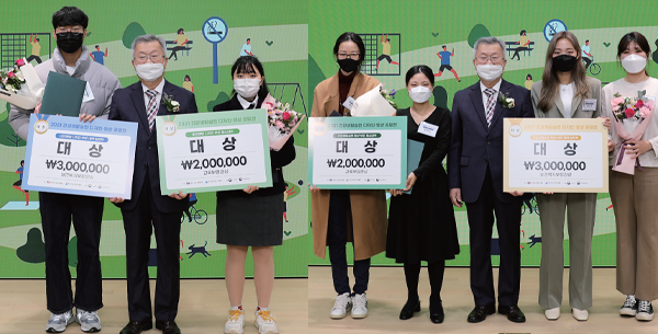 ※ (사진 좌) 비만예방 디자인 부문 대상 수상자, (사진 우) 건강생활실천 UCC부문 대상수상자