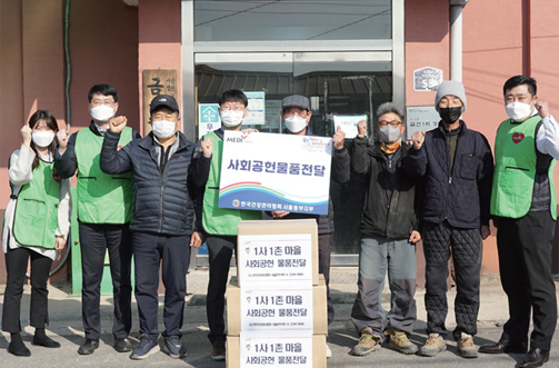 서울동부지부는 11. 24.(수) 1사 1촌 마을인 포천시 가산면 금현1리에 방문했다. 이날 마을 어르신들을 찾아 안부를 여쭙고, 어르신들에게 필요한 사회공헌 물품을 전달하였다. 또 농가 일대에 버려진 농업용 폐기물과 각종 쓰레기를 줍는 환경정화 활동을 전개하였다. 서울동부지부는 앞으로도 1사 1촌 마을에 필요한 각종 사회공헌 활동을 적극 실시하게 된다.