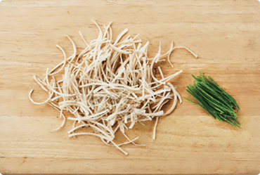 ① 우엉은 칼등으로 껍질을 벗기고 6cm 길이로 고르게 채 썬다.