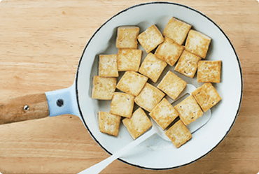 ② 두부는 먹기 좋은 크기로 썰어 소금을 뿌린 후 프라이팬에 식용유를 두르고 노릇하게 지진다.