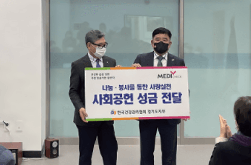 서울서부지부는 지난해 12. 15.(수) 기부하는 ‘건강나눔계단’ 후원금 전달식을 진행했다. KB국민은행, KBS비즈니스와 협력하여 모금된 후원금은 발달장애인의 복지와 강서구 의료취약세대에 기부된다. 서울서부지부는 앞으로도 지역사회의 다양한 의료 취약계층을 위한 건강증진활동에 지속적으로 앞장설 예정이다.