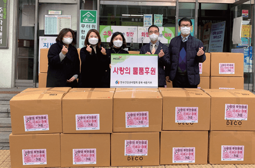 충북세종지부는 지난해 12. 21.(화) 청주시 흥덕구 봉명2송정동 주민센터에 방문해 100만 원 상당의 후원 물품인 이불을 전달했다. 직원들은 따뜻한 연말이 될 수 있도록 직접 가정에 방문하여 이불을 배달했다. 충북세종지부는 지속적으로 사회공헌 활동을 펼쳐 더불어 사는 삶을 실천하고자 한다.