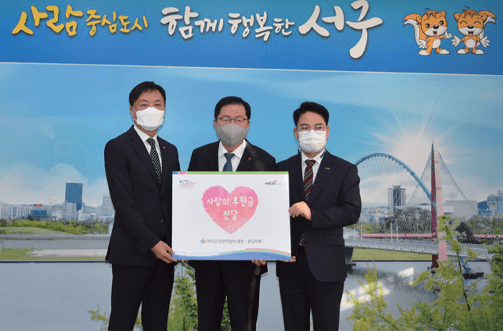 대전충남지부는 지난해 12. 6.(월) 저소득층 주민 및 복지시설에 쓰일 수 있도록 서구청에 성금을 기탁했다. 이 성금은 코로나19가 지속되는 가운데 추운 겨울을 보내는 어려운 지역주민들을 위해 유용하게 쓰이게 된다. 대전충남지부는 앞으로도 지역사회 발전에 기여하고 나눔을 실천하는 데 항상 노력을 기울일 예정이다.