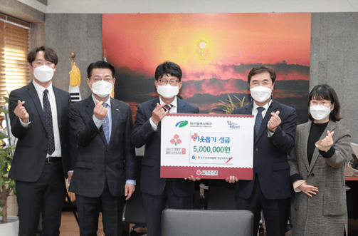 경북지부는 지난해 12. 7.(화) 대구 북구청을 방문하여 지역사회 이웃돕기 성금 500만 원을 전달했다. 이번 후원금은 대구사회복지공동모금회를 통해 북구 지역의 저소득 이웃을 위한 북구청의 복지사업 ‘행복북구 희망은행’에 활용될 예정이다.