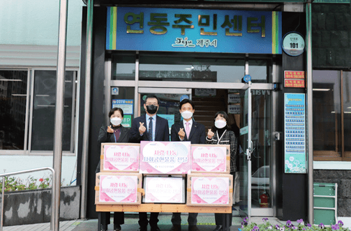 제주지부는 지난해 12. 16.(목) 연말연시를 맞이하여 따뜻한 겨울을 보내는 데 보탬이 되었으면 하는 바람을 담아 제주 연동주민센터에 사회공헌물품을 전달했다. 제주지부는 사회공헌활동과 나눔을 실천하여 지역사회에 보탬이 되고, 신뢰받고 믿음직한 공익의료기관이 되기 위해 최선을 다하고 있다.