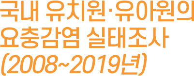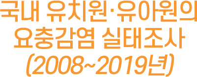 12년간(2008~2019년)의 국내 요충 감염률은 점차적으로 감소하는 추세를 보이고 있으며, 이는 지속적인 위생관리교육과 적절한 치료가 감소의 주된 요인으로 생각된다. 또 과거에 비해 현재 유치원과 초등학교의 학급당 어린이 및 학생 수가 감소해 집단감염의 기회가 상대적으로 줄어든 것으로 사료된다. 그러나 낮은 감염률로 유지되고 있으므로, 앞으로도 지속적인 모니터링과 예방교육을 통해 국내 요충증을 관리해야 할 것이다.