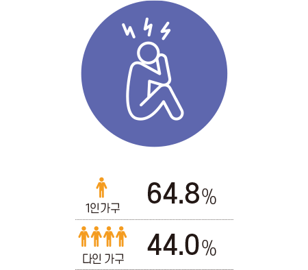 20~30대 청년층 1인가구 역시 다인 가구보다 건강에 관한 관심이 적고, 식사가 불규칙하며, 현재의 식생활에 만족도가 낮았다. 하지만 이들은 스스로 건강하다고 인식했다. 또 배달·테이크아웃, 점심 결식, 저녁 결식의 위험이 커 비만 또는 영양 결핍도 우려된다. 40~50대 중년층 1인가구도 결식 위험이 큰 것으로 나타났다. 이들은 활발하게 사회생활을 할 때라 회사에 있을 때는 괜찮지만, 퇴근 후 밤이 되면 우울감을 크게 느껴 음주를 즐기는 경우가 많아 주의가 요구된다.