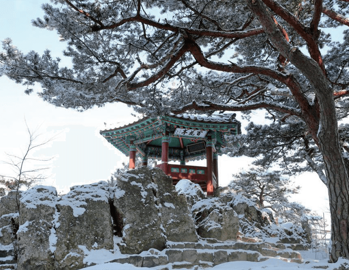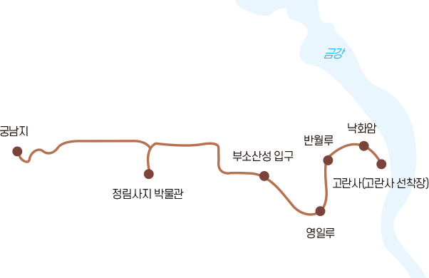 해발 106m인 부소산(扶蘇山)은 부여읍 쌍북리, 구아리, 구교리에 걸쳐있는 부여의 진산이다. 평지에 돌출한 형태이며, 동쪽과 북쪽은 가파르고 백마강과 맞닿았다. 부소산이라는 이름은 『세종실록지리지』의 기록에 처음 선보였는데, ‘부소(扶蘇)’의 뜻은 백제시대 언어로 ‘소나무(松)’라는 뜻이 있어, 부소산을 ‘솔뫼’라고 보는 학설이 유력하다.