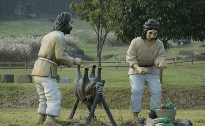 고인돌박물관 야외 공간인 고인돌공원은 자연환경과 고인돌이 잘 어우러져 있다. 넓은 들판 주변으로 하천과 산이 있어 이곳에 모여 살았던 삶의 흔적이 고인돌 군락으로 남았음을 알 수 있다. 오래된 이름 없는 돌무덤은 오래전 조상들이 생의 마지막을 흙에 묻고 돌로 장식한 것이다. 선사시대 사람들의 흔적인 고인돌이 오랜 세월을 건너며 자연과 어우러져 하나의 역사가 되었다.