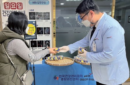 광주전남지부는 2. 15.(화) 우리 민족 고유 명절인 정월대보름을 맞아 협회를 찾은 고객들에게 ‘부럼 나눔’ 이벤트를 진행했다. 이번 행사는 검진고객들이 정월대보름에 부럼을 깨면서 1년 동안 무사태평하길 기원하고 따뜻한 정을 나누기 위해 마련되었다. 광주전남지부는 앞으로도 지역사회의 건강증진을 위해 노력할 예정이다.