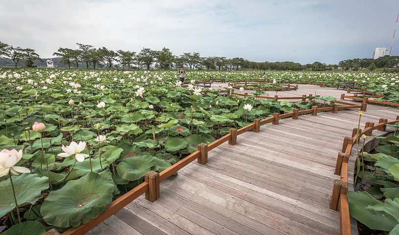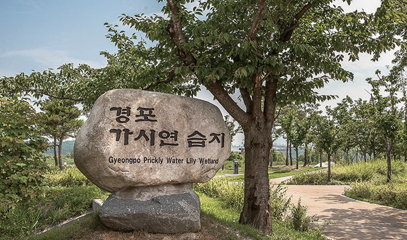 경포가시연습지는 연꽃과 가시연이 어우러져 아름다운 모습을 선사하는 곳이다. 경포 주변의 호수 생태계를 복원하고 다양한 수중생물이 서식할 수 있는 환경을 마련하기 위해 조성된 경포생태습지원은 훌륭한 관광 코스다. 습지와 호수, 바다로 이어지는 강릉 경포 일대 습지가 복원되면서 환경부 지정 멸종위기 2급 식물인 가시연꽃이 군락을 이뤄 되살아나는 등 생태 기적의 현장으로 시선을 끌었다.