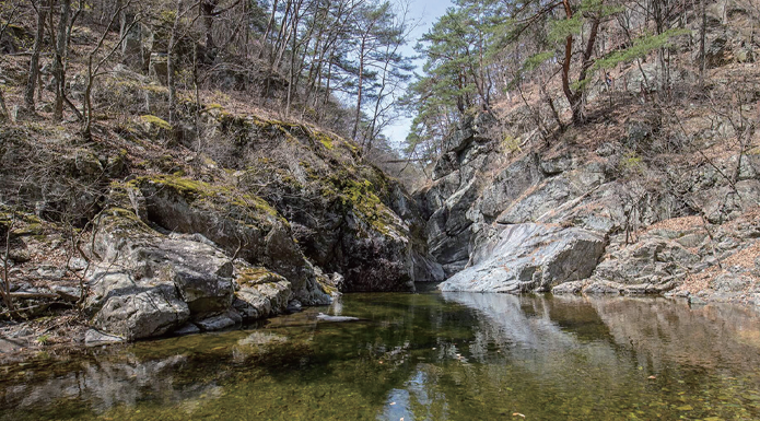 신선이 놀 듯 아름답다고 해서 이름 붙여진 신선계곡에는 깎아지른 기암괴석 사이로 경쾌하게 흐르는 계곡물 소리가 끊이지 않는다. 맑디맑은 계곡물은 물 바닥에 쌓인 돌과 헤엄치는 버들치까지 투명하게 보여준다. 신선계곡 절경 중 최고로 꼽히는 용소는 용이 승천했다는 곳으로,가뭄이 심할 때면 용소에서 기우제를 지냈다고 한다. 호박소, 용소 등 절경을 한눈에 담을 수 있도록 계곡 네 곳에 출렁다리가 설치되어 있다. 아찔한 높이에서 출렁거리는 다리 위에 있으면 겁이 나면서도 기암괴석과 푸르른 금강송, 닭벼슬, 숫돌 등 여러 얼굴을 한 기묘한 바위들과 동그랗게 고여 부드럽게 흘러 내려가는 물줄기의 어우러짐에 잠시 넋을 놓게 된다. 흔들리는 발밑 때문에 마치 하늘에 떠 있는 듯한 기분이 들기도 한다.