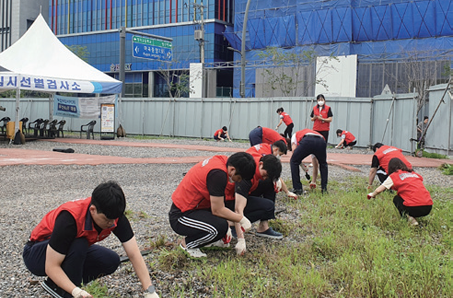 한국건강관리협회는 지난 8. 9.(화) 서울시 강서구 마곡8공영주차장에 마련된 코로나19 임시선별검사소 일대에서 지역주민들이 쾌적하고 안전하게 임시선별검사소를 이용할 수 있도록 주변 잡초 제거 및 쓰레기 수거 등 환경 정화 활동을 실시했다.