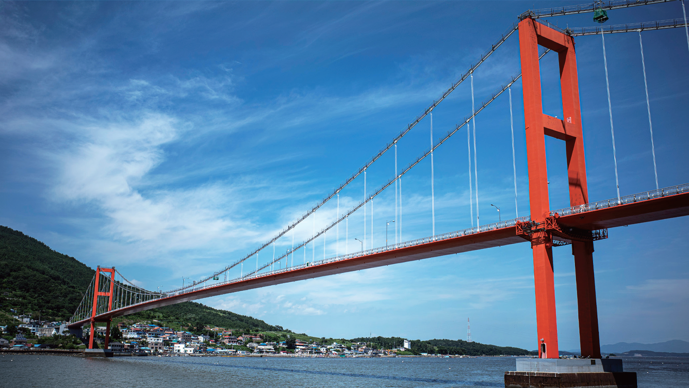총길이 660m, 높이 80m의 아름다운 현수교인 남해대교는 개통식에 약 10만 명이 몰려 인산인해를 이룬, 지방자치 역사상 가장 화려했던 개통식으로 기록됐다. 1968년 현대건설이 총괄해 착공한 후 5년 1개월의 공사 기간을 거쳐 선보인 남해대교가 개통되자 남해군은 배가 아닌 육로로 통행이 가능해졌다. 또 다른 세계로 나아가는 첫 통로가 되어준 남해대교는 남해 사람들에겐 ‘출발’의 의미를 지닌 다리다. 객지로 떠날 때도, 다시 뭍에서 고향으로 돌아올 때도 이 대교가 주는 안도감과 포근함으로 기억되고 있다. 봄이면 벚꽃이 터널을 만드는 설천면 노량-문항 일대를 이어주는 아름다운 다리로 사랑받고 있으며 7년 임진왜란을 종식한 승리의 전쟁 노량해전을 기리는 거북선과 이순신 충렬사가 손에 잡힐 듯한 역사적 다리로도 기억된다.