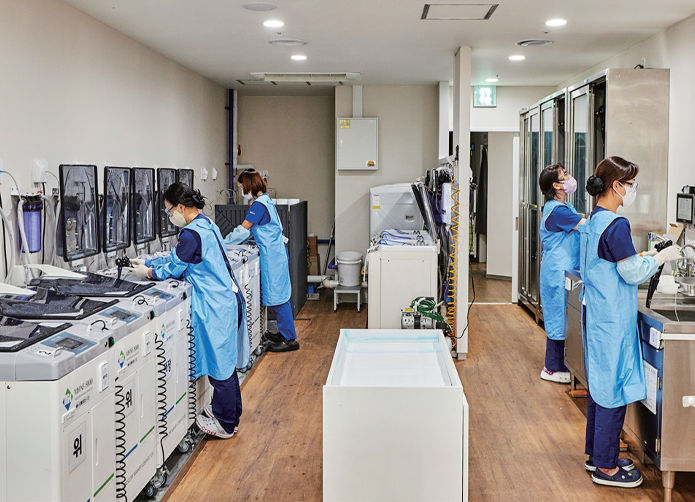 내시경은 검사와 치료를 동시에 할 수 있는 것이 큰 장점입니다. 용종 발견 시 바로 제거하여 암으로 진행하지 않도록 예방하고 치료할 때 보람과 자부심을 느낍니다. 업무 특성상 내내 서 있어야 하다 보니 체력적으로 힘은 들지만, 내시경을 무사히 잘 받고 ‘다른 곳보다 편안하게 검사를 받았다’는 고객의 한마디에 큰 힘을 얻습니다. 객관적인 품질관리 수준을 평가받기 위해 외부 영상화질평가, 우수검사실 및 우수내시경실 인증, 우수종합건강검진센터 인증 등 외부기관에 의한 점검 및 평가를 지속적으로 진행하고 있습니다. 앞으로도 자체 품질관리 및 분야별 역량강화교육을 통해 질 관리를 철저히 하며 고객 감동을 실천해가겠습니다.
