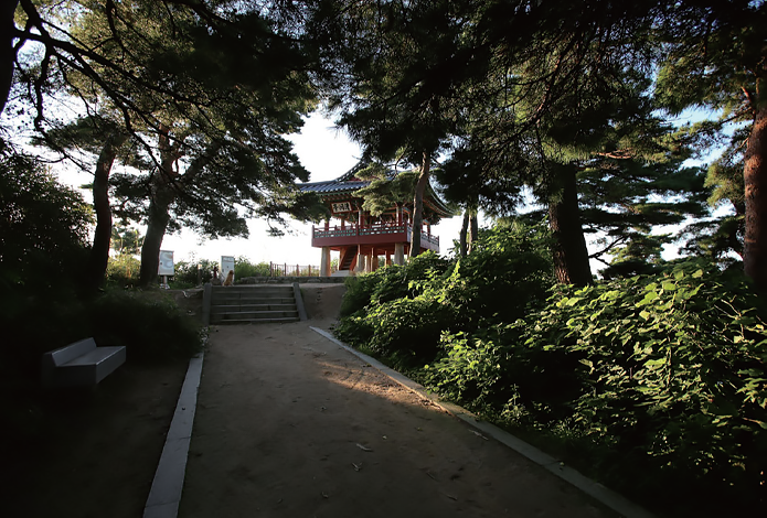 노송 숲 사이의 오솔길에서 만나는 청간정