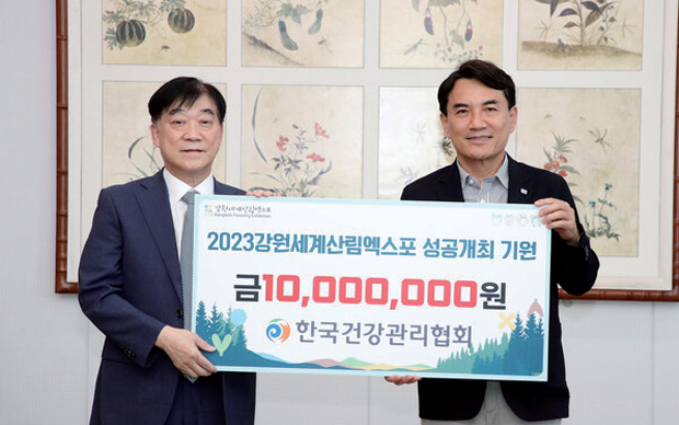 한국건강관리협회는 강원세계산림엑스포 조직위원회와 8.8.(화) ‘2023 강원세계산림엑스포’의 성공 개최를 위한 업무협약식을 가지며 후원금 1천만 원을 기탁했다. 업무협약식 및 기탁식에는 건협 김인원 회장, 박철호 강원도지부 본부장, 김정환 전략사업부장을 비롯해 엑스포 조직위원회 김진태 위원장, 김동일 상임부위원장 등이 참석했다. 본 협약을 통해 협업체계 구축, 온·오프라인 홍보 및 관람 협조 등이 추진된다.