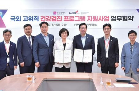 부산동부지부는 8. 4.(금) 부산시청 국제의전실에서 부산시(시장 박형준)와 ‘국외 고위직 건강검진프로그램 지원 업무협약’을 체결하였다. 이번 업무협약은 부산을 방문하는 국외 고위직 인사에게 부산의 수준 높은 건강검진 프로그램을 체험할 수 있게 함으로써 2030세계박람회 개최 후보 도시 ‘부산’의 도시브랜드 경쟁력을 강화하기 위해 마련되었다.