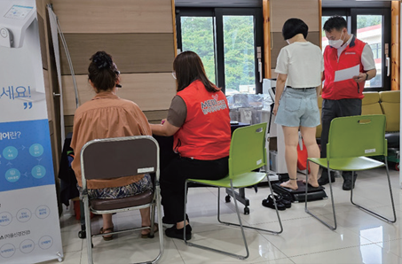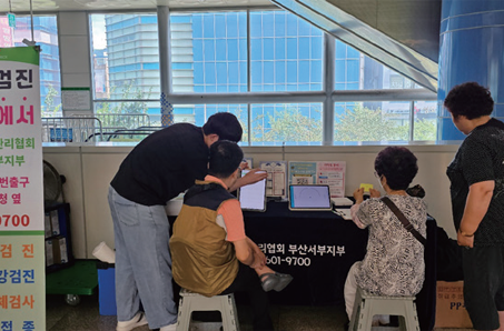 부산서부지부는 8. 8.(화) 지하철 2호선 양산역에서 무더운 여름철 지하철 이용객을 대상으로 심전도 측정, 체지방 측정 등을 체험해볼 수 있는 건강체험터를 운영했다. 부산서부지부는 정기적으로 건강체험터를 운영하여 보건의료기관으로서 지역주민의 건강증진을 위한 노력을 다할 계획이다.