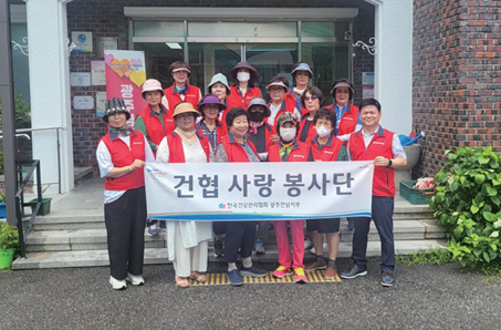 광주전남지부는 7. 26.(수) 아동복지시설인 광주영신원을 찾아 봉사활동을 실시하였다. 봉사활동에는 건협사랑어머니봉사단이 참여하여 원생들이 쾌적한 환경에서 생활할 수 있도록 원내 곳곳을 돌며 잡초 제거, 청소등의 정화활동을 실시했다. 봉사활동을 마친 후 앞으로도 복지취약지대에 놓인 소외계층을 지원하는 데 최선을 다할 것을 다짐하는 시간도 가졌다.