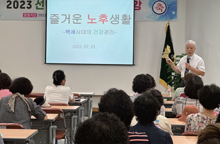 경북지부는 7. 21.(금) 성주 선남농협 조합원 120명을 대상으로 백세시대의 건강관리를 위한 강좌를 실시했다. 경북지부 호흡기내과 전문의 정태훈 진료과장은 고령화 사회를 대비하기 위한 건강관리 및 암 예방에 대한 정보를 제공하였으며, 지역주민들은 건강생활에 도움이 되는 유익한 시간이었다고 호평했다.