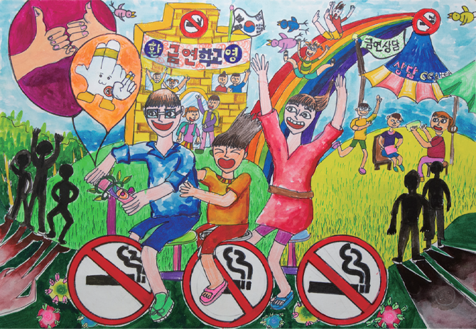 기존의 틀에 박힌 금연 포스터나 그림보다는 건강과 환경 등에 대한 자신의 의견이나 생각을 잘 표현한 작품이 눈에 띄었고, 창의적이면서도 복합적으로 화면 속에 잘 구성해 마치 그림책을 보는 것처럼 이야기 전달력이 우수한 작품도 많았다. 특히 금연이라는 무거운 주제를 밝고 행복하게 풀어낸 그림들은 한 편의 우수한 글짓기 작품 같아 흐뭇함을 안겼다.