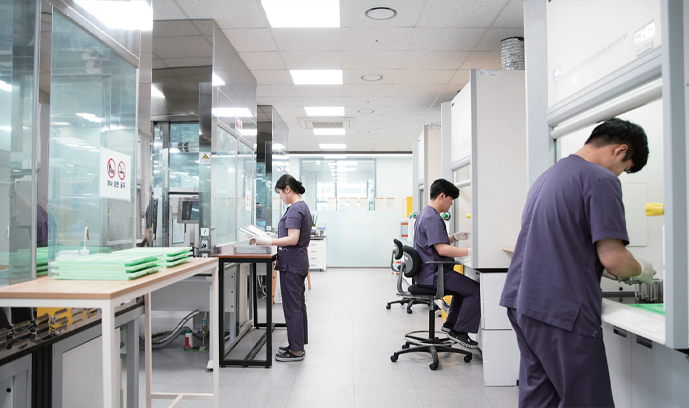 건강검진과 건강관리에 적합한 검사를 정확하게 실시해 과학적 근거를 마련하는 것이 중앙검사본부의 역할입니다. 이 과정은 중앙검사본부뿐만 아니라 모든 17개 지부구성원의 협조와 노력으로 이루어집니다. 특히 검사의 신뢰도 유지를 위해 매일 표준물질로 검사의 정밀성을 검증하는 내부정도관리와 국내외에서 실시하는 정도관리 프로그램에 가입해 결과의 정확성을 평가받고 있습니다.