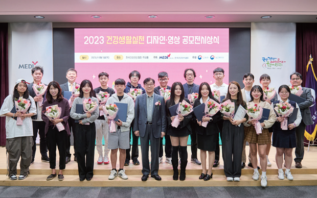 한국건강관리협회는 10. 5.(목) 본회 추담홀에서 ‘2023년 건강생활실천 디자인·영상 공모전’ 시상식을 개최했다. 시상식에는 건협 김인원 회장, 장국진 전략사업본부장을 비롯한 수상자와 가족 등 30여 명이 참석했다. 대상에는 일반부 권예지 씨(디자인)와 학앤옥팀(영상)이 보건복지부장관상을, 청소년부는 장은채 학생(디자인)과 칼퇴바람팀(영상)이 교육부장관상을 수상했다. 이번 공모전에는 총 266개 작품이 각축전을 벌여 총 36명(팀)이 선정됐다.