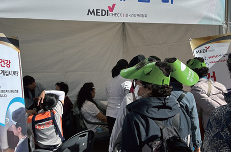 부산동부지부는 10. 13.(금)~15.(일)까지 3일간 벡스코 제1전시장에서 진행한 ‘메디부산 2023 시민건강박람회’에 참여하여 건강체험관을 운영했다. 행사 참관객을 대상으로 건강체험의 기회를 제공하여 본인 건강 및 건강검진의 중요성을 알렸으며, 새로운 협회 캐릭터 뿌기와 또기를 홍보하는 동시에 카카오톡 플러스 친구 추가를 진행하여 협회 알리기에 주력했다.