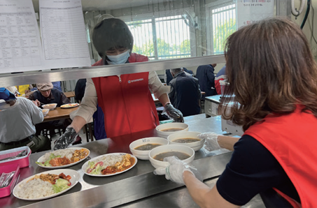 대전충남지부 건협사랑어머니봉사단은 10.11.(수) 중구 중촌동에 위치한 효심정에서 배식봉사 활동을 진행했다. 직원들과 단원들은 효심정 주변 환경정화 활동을 시작으로 배식 보조, 설거지 및 뒷정리 지원을 통하여 봉사활동의 참된 의미를 느끼고 어르신들과 안부를 나누는 따듯한 시간을 보냈다.