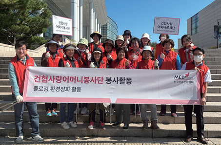 전북지부는 10. 11.(수) 전주 건지산 둘레길에서 플로깅(plogging) 봉사활동을 진행했다. 이날 봉사활동은 직원 및 건협사랑어머니봉사단 20명이 참여했으며, 건지산 둘레길을 산책하며 쓰레기를 줍고 분리수거하는 등 환경정화를 통한 지역사회와의 상생을 도모했다. 앞으로도 전북지부는 지역주민의 건강뿐만 아니라 지역사회의 건강환경 조성을 위해 플로깅을 지속할 예정이다.