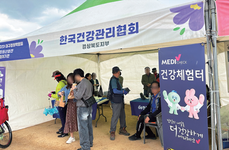 경북지부는 10. 13.(금)~10. 17.(화)까지 열린 ‘2023대구정원박람회’에 참여하여 건강캠페인을 실시했다. 이번 박람회는 대구에서 처음 개최하는 만큼 각지에서 많은 시민들이 방문했으며 볼거리와 즐길거리가 다양했다. 경북지부는 뇌파맥파 스트레스 검사를 체험해 볼 수 있는 건강체험터를 운영하여 건강검진의 중요성을 알렸다.