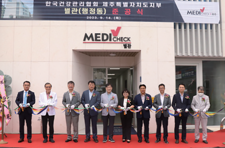 제주지부는 검진시설 확충의 일환으로 별관 신축 준공식을 9. 14.(목) 진행했다. 이날 준공식 행사에는 김인원 회장, 이은희 사무총장 등이 참석하였으며, 행사는 그동안 건립 추진 경과보고 및 기념사, 감사패 수여 등으로 진행되었다. 사무실 이전을 통해 확보된 본관건물은 새롭게 리모델링을 통해 충분한 검진 시설을 확보하게 되며, 이를 통해 보다 나은 검진 서비스 제공을 하게 된다.