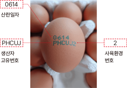 숫자 네 자리는 산란일자로, 그림의 달걀은 6월 14일에 산란된 달걀이다.