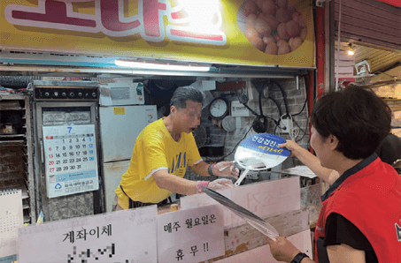 지역 시장에서 부채 나눔 캠페인 실시