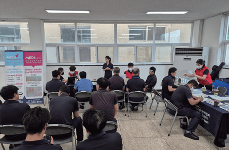 부산동부지부는 부산해양경찰정비창 직원들을 대상으로 건강체험터를 운영했다. 이번 캠페인에서는 무더운 여름에도 선박 점검 및 수리 작업을 진행하는 직원들과 해양경찰 관계자들의 건강관리를 위해 뇌파·맥파 측정과 조갑주름 모세혈관 검사 프로그램을 운영했다. 캠페인에 참여한 직원들은 자신의 건강상태를 점검하며 온열질환의 위험성을 되새기는 시간을 가졌다.