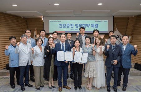 본부는 7. 28.(월) 한국노인인력개발원과 노년기 건강증진 및 복지 향상을 위한 업무협약을 체결했다. 이번 협약을 통해 어르신 대상 종합건강검진 우대 혜택, 만성질환 예방 및 치료 연계, 건강생활 실천 프로그램 운영 등 실질적인 건강지원 사업을 공동으로 추진하고, 노인의 사회참여 활성화와 양질의 일자리 확대를 위한 협력도 강화해나갈 계획이다.