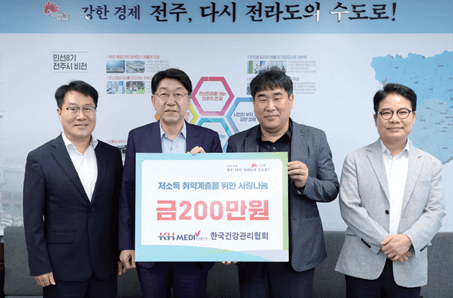 전북지부는 7. 1.(화) 전주시청에 ‘저소득 취약계층을 위한 사랑나눔’ 후원금 200만 원을 전달했다. 이번 후원은 어려운 이웃들에게 따뜻한 온정을 나누고, 공익의료기관으로서 사회적 책임을 다하기 위해 마련되었다. 후원금은 독거노인, 한부모 가정 등 전주시 내 취약계층을 지원하기 위한 복지사업에 활용될 예정이다. 전북지부는 앞으로도 다양한 사회공헌활동을 지속적으로 추진할 계획이다.