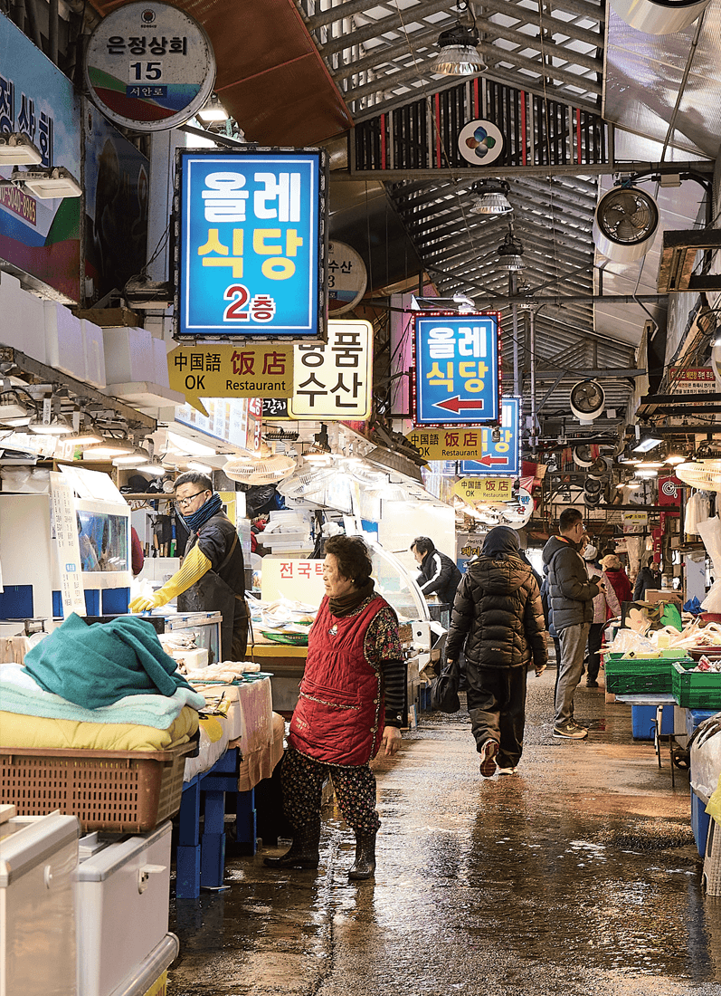 골목은 결국 동문시장으로 흐른다. 은빛 생선과 온갖 과일의 색감, 상인들의 웃음이 겹쳐진 소리. 이곳에서 제주는 가장 생활적인 얼굴을 드러낸다.