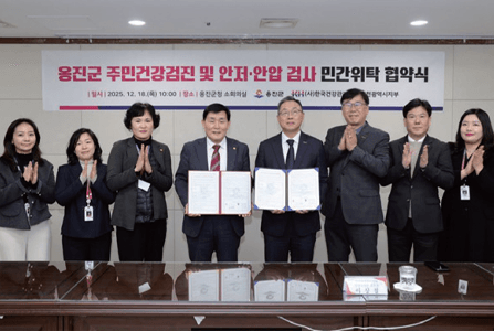 인천지부는 지난 12. 18.(목) 옹진군과 주민건강검진 및 안저·안압검사 위수탁 협약을 체결했다. 이번 협약을 통해 옹진군 주민을 대상으로 혈액·소변검사, 골밀도 및 안저·안압검사 등을 시행한다. 이를 통해 인천지부는 만성질환과 주요 질환을 조기 발견 및 예방하고, 앞으로도 종합검진 인프라와 전문성을 바탕으로 주민 맞춤형 보건의료 서비스를 제공하며 공공보건 서비스의 질 향상에 힘쓸 예정이다.